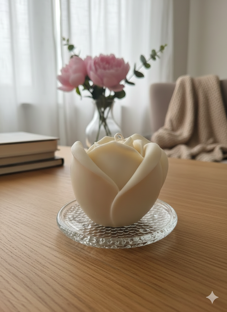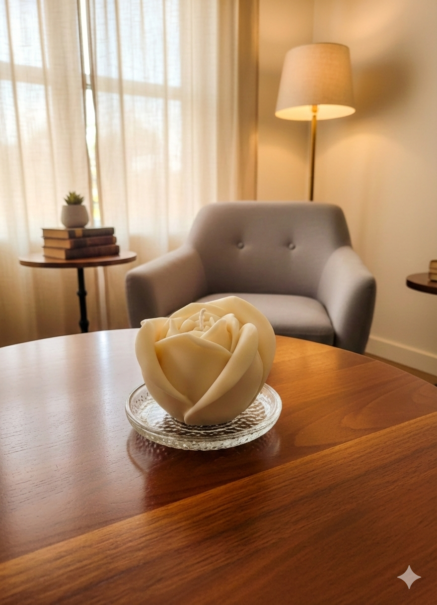 Una vela artesanal en forma de Rosa que trasmite calma, belleza y armonía. Su diseño delicado convierte cualquier espacio en un rincon especial, ideal para momentos de relajación, decoración elegante o un regalo lleno de intención y estilo.